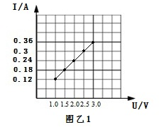 (4)他们排除故障后继续实验,测得多组数据记录在下表中,请根据数据,在方格纸(图乙)中建立有关坐标轴、制定标度,并把表中数据在坐标系中描点后绘制出电流、电压关系图线。