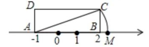 如图,矩形 $A B C D$ 中,$A B=3, A D=1$ ,点 $A, B$ 在数轴上,若以点 $A$ 为圆心,对角线 $A C$ 的长为半径作弧交数轴的正半轴于点 $M$ ,则点 $M$ 表示的数为