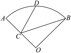 如图,已知半径为 2 的扇形 $A O B$ 的圆心角为 $\frac{\pi}{2}, C$ 为 $O A$ 的中点,$D$ 是 $\overparen{A B}$ 上一动点.