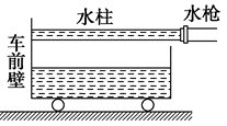 如图所示,静止在光滑水平面上的小车质量 $M=20 \mathrm{~kg}$ .从水枪中喷出的水柱的横截面积 $S=10 \mathrm{~cm}^2$ ,速度 $v=10 \mathrm{~m} / \mathrm{s}$ ,水的密度 $\rho=1.0 \times 10^3 \mathrm{~kg} / \mathrm{m}^3$ .若用水枪喷出的水从车后沿水平方向冲击小车的前壁,且冲击到小车前壁的水全部沿前壁流进小车中.当有质量 $m=5 \mathrm{~kg}$ 的水进入小车时,试求:
