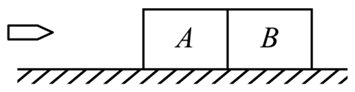 如图所示,在光滑水平面上静止放着两个相互接触的木块 $\mathrm{A} 、 \mathrm{~B}$ ,质量分别为 $m_1$ 、 $m_2$ ,今有一子弹水平穿过两木块,设子弹穿过木块 $\mathrm{A} 、 \mathrm{~B}$ 的时间分别为 $t_1 、 t_2$ ,木块对子弹的阻力恒为 $f$ ,则子弹穿过两木块后,木块 $\mathrm{A} 、 \mathrm{~B}$ 的速度大小分别为