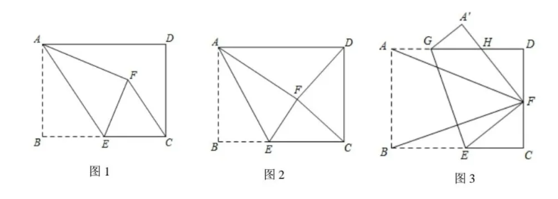 (3)如图 3,在 $A D$ 上取点 $G$(不与 $A, D$ 重合),将四边形 $A B E G$ 沿 $E G$ 翻折,使得点 $B$ 的对应点 $F$ 落在 $C D$ 上,$A^{\prime} F$ 与 $A D$ 交于点 $H$(点 $A$ 的对应点为 $A^{\prime}$ ),求 $E G+\frac{3}{4} A F$ 的最小值,并求此时线段 $D H$ 的长.