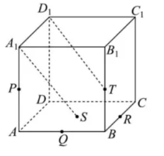 如图,正方体 $A B C D-A_1 B_1 C_1 D_1$ 中,$P, ~ Q, ~ R, ~ S, ~ T$ 分别为线段 $A A_1, ~ A B, ~ B C, ~ B D, ~ B B_1$ 的中点,联结 $A_1 S, ~ D_1 T$ ,对空间任意两点 $M, ~ N$ ,若线段 $M N$ 与线段 $A_1 S$ 不相交或与线段 $D_1 T$ 不相交,则称 $M, ~ N$ 两点可视,下列选项中与点 $C_1$ 不可视的为