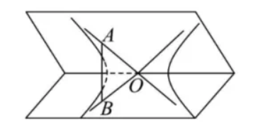 已知 $A , B$ 分别是双曲线 $: \frac{x^2}{a^2}-\frac{y^2}{b^2}=1(a>0, b>0)$ 渐近线上的两点,且 $A B \perp x$ 轴,点 $O$ 是坐标原点.现将 $C$ 所在平面沿 $x$ 轴折成平面角为锐角 $\alpha$ 的二面角,翻折后如图,此时 $\angle A O B=\beta$ •若 $\frac{1-\cos \alpha}{1-\cos \beta}=\frac{25}{16}$ ,则 $C$ 的离心率为
