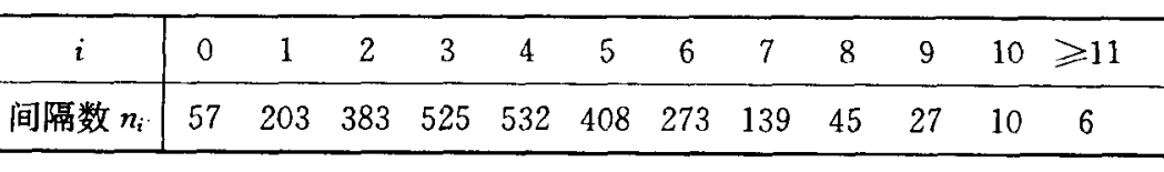 卢瑟福为了观察放射性物质放射的粒子数,在 2608 个相等的时间间隔(每次 7.5 秒)内进行了观测,表 9-6 所列是观察到 $i$ 个粒子的时间间隔数,试检验观测数据是否服从普阿松分布 $(\alpha=0.05)$ ?