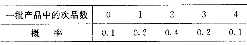 某厂生产的产品以 100 件为一批,假定每批产品中的次品最多不超过 4 件,且有如下的概率分布: