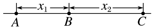 如图所示,一质点做匀加速直线运动先后经过 $A, ~ B, ~ C$ 三点,已知从 $A$ 到 $B$ 和从 $B$ 到 $C$ 速度的增加量 $\Delta v$ 均为 $6 m / s$ , $A B$ 间的距离 $x_1=3 m, ~ B C$ 间的距离 $x_2=13 m$ ,则该质点的加速度为