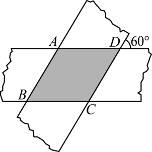 如图,两张宽度均为 3 cm 的纸条交叉叠放在一起,交叉形成的锐角为 $60^{\circ}$ ,则重合部分构成的四边形 $A B C D$的周长为 $\qquad$ cm