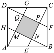 如图,边长为 5 的正方形 $A B C D, E, F, G, H$ 分别为各边中点,连接 $A G, B H, C E, D F$ ,交点分别为 $M, N, P, Q$ ,那么四边形 $M N P Q$ 的面积为