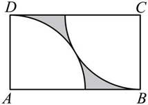 如图,在矩形 $A B C D$ 中,分别以点 A 和 $C$ 为圆心,$A D$ 长为半径画弧,两弧有且仅有一个公共点.若 $A D=4$ ,则图中阴影部分的面积为