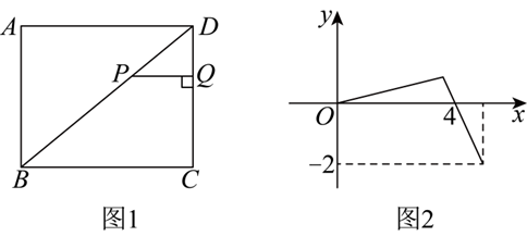 如图 1,矩形 $A B C D$ 中,$B D$ 为其对角线,一动点 $P$ 从 $D$ 出发,沿着 $D \rightarrow B \rightarrow C$ 的路径行进,过点 $P$ 作 $P Q \perp C D$ ,垂足为 $Q$ .设点 $P$ 的运动路程为 $x, P Q-D Q$ 为 $y, y$ 与 $x$ 的函数图象如图 2 ,则 $A D$ 的长为