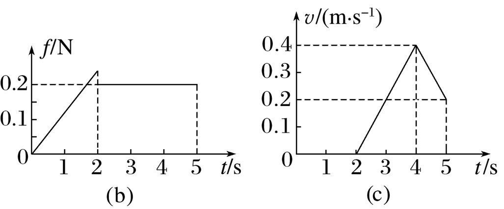 如图(a),物块和木板叠放在实验台上,物块用一不可伸长的细绳与固定在实验台上的力传感器相连,细绳水平.t=0时,木板开始受到水平外力F的作用,在t=4 s时撤去外力.细绳对物块的拉力f随时间t变化的关系如图(b)所示,木板的速度v与时间t的关系如图(c)所示.木板与实验台之间的摩擦可以忽略.重力加速度取10 m/s2.