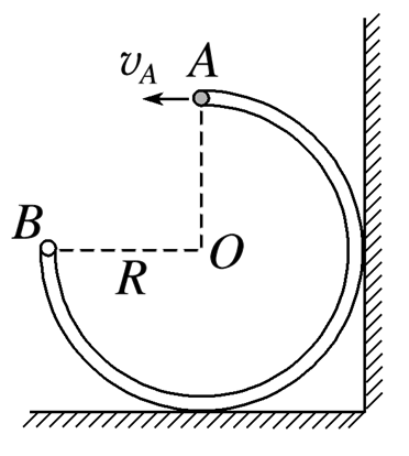 如图所示,在竖直平面内有一半径为R的光滑固定细管(忽略管的内径),半径OB水平、OA竖直,一个直径略小于管内径的小球(可视为质点)由B点以某一初速度v0进入细管,之后从管内的A点以大小为vA的水平速度飞出.忽略空气阻力,重力加速度为g,