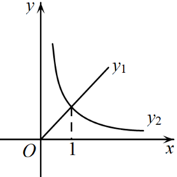 已知函数 $y_1=|x|$ 与函数 $y_2=\frac{1}{|x|}$ 的部分图像如图所示,