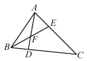 如图,在 $\triangle A B C$ 中,$D$ 是 $B C$ 上靠近点 $B$ 的四等分点,$E, F$ 分别为 $A C, A D$ 的三等分点,且分别靠近 $A, D$ 两点,设 $\overrightarrow{A B}=\boldsymbol{a}, \overrightarrow{A C}=\boldsymbol{b}$ .