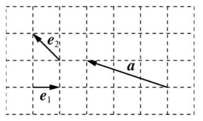 如图,向量 $\boldsymbol{e}_{1}, \boldsymbol{e}_{2}, \boldsymbol{a}$ 的起点与终点均在正方形网格的格点上,则向量 $\boldsymbol{a}$ 可用基底 $\boldsymbol{e}_{1}, \boldsymbol{e}_{2}$ 表示为 $\qquad$ .
