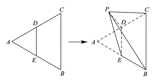 如图,$D E$ 是边长为 4 的等边三角形 $A B C$ 的中位线,将 $V A D E$ 沿 $D E$ 折起,使得点 A 与 $P$ 重合,平面 $P D E \perp$平面 $B C D E$ ,则四棱锥 $P-B C D E$ 外接球的表面积是