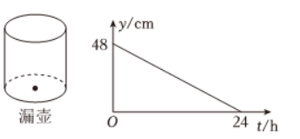 "漏壶"是中国古代一种全天候计时仪器,在它内部盛一定量的水,水从壶下的小孔漏出,壶内壁有刻度,人们根据壶中水面的位置计算时间.壶中水面高度 $y$(单位: cm )随漏水时间 $t$(单位:$h$ )的变化规律如图所示(不考虑水量变化对压力的影响)。水面高度从 48 cm 变化到 42 cm 所用的时间是