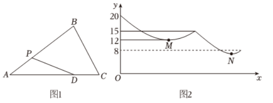 如图1,在 $\triangle A B C$ 中,$D$ 是边 $A C$ 上的定点.点 $P$ 从点 $A$ 出发,依次沿 $A B, B C$ 两边匀速运动,运动到点 $C$ 时停止.设点 $P$运动的路程为 $x, D P$ 的长为 $y, y$ 关于 $x$ 的函数图象如图2所示,其中 $M, N$ 分别是两段曲线的最低点。点 $N$ 的纵坐标是()
