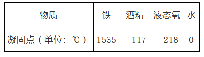在标准大气压下,四种物质的凝固点如表所示,其中凝固点最低的物质是 $\qquad$ .