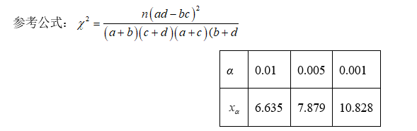 参考公式:$\quad \chi^2=\frac{n(a d-b c)^2}{(a+b)(c+d)(a+c)(b+d)}$ ,其中 $n=a+b+c+d$ .