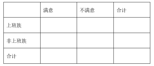 某机构为了解市民对交通的满意度,随机抽取了 100 位市民进行调查结果如下:回答"满意"的人数占总人数的一半,在回答"满意"的人中,"上班族"的人数是"非上班族"人数的 $\frac{3}{7}$ ;在回答"不满意"的人中,"非上班族"占 $\frac{1}{5}$ .