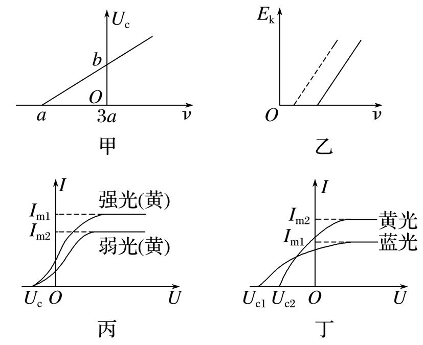 如图所示,甲、乙、丙、丁是关于光电效应的四个图像(电子电荷量为e),以下说法正确的是