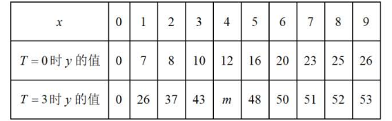工厂对新员工进行某种工艺品制作的培训.在完成理论学习后,新员工接下来先使用智能辅助训练系统进行一次为期 $T$ 日( $T$ 可取 $0,1,2$ 或 3 )的模拟练习,然后开始试制.记一名新员工在试制阶段的第 $x$ 日单日制成的合格品的个数为 $y$ ,根据以往的培训经验,对于给定的 $T$ ,可以认为 $y$ 是 $x$ 的函数.当 $T=0$ 和 $T=3$ 时,部分数据如下: