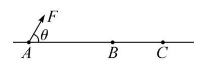 如图所示,直杆水平固定,质量为 $m=$ 0.1 kg 的小圆环(未画出)套在杆上 $A$ 点,在坚直平面内对环施加一个与杆夹角为 $\theta=53^{\circ}$ 的斜向上的拉力 $F$ ,使小圆环由静止开始沿杆向右运动,并在经过 $B$ 点时撤掉此拉力 $F$ ,小圆环最终停在 $C$ 点。已知小圆环与直杆间的动摩擦因数 $\mu=0.8, ~ A B$ 与 $B C$的距离之比 $s_1: s_2=8: 5$ 。( $g$ 取 $10 \mathrm{~m} / \mathrm{s}^2$ , $\sin 53^{\circ}=0.8, ~ \cos 53^{\circ}=0.6$ )求: