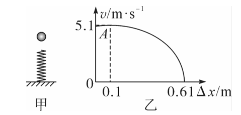 如图甲所示,轻弹簧坚直固定在水平面上,一质量为 $m=0.2 \mathrm{~kg}$ 的小球,从弹簧上端某高度处自由下落,从它接触弹簧到弹簧压缩至最短的过程中(弹簧始终在弹性限度内),其速度 $v$ 和弹簧压缩量 $\Delta x$ 之间的函数图像如图乙所示,其中 $A$ 为曲线的最高点,小球和弹簧接触瞬间机械能损失不计,$g=10 \mathrm{~m} / \mathrm{s}^2$ ,则下列说法正确的是