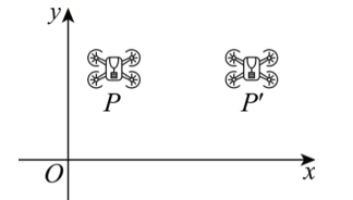 如图,将无人机沿着 $x$ 轴向右平移 3 个单位,若无人机上一点 $P$ 的坐标为 $(1,2)$ ,则平移后点 $P$ 的坐标为