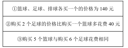 某学校采购体育用品,需要购买三种球类.已知某体育用品商店排球的单价为 30 元/个,篮球,足球的价格如下表: