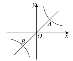 如图,同一平面直角坐标系下的正比例函数 $y=a x$ 与反比例函数 $y=\frac{2-a}{x}$ 相交于点 A 和点 $B$ .若 A 的横坐标为 1 ,则 $B$ 的坐标为