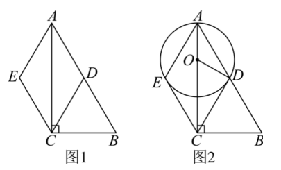 (2)如图 2,若点 $O$ 为 $A C$ 上一点,且 $E, \mathrm{~A}, D$ 三点均在 $\odot O$ 上,连接 $O D, C D$ 与 $\odot O$ 相切于点 D ,