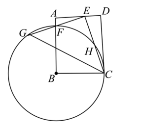 如图,以矩形 $A B C D$ 的 $B$ 点为圆心,$B C$ 的长为半径作 $\odot B$ ,交 $A B$ 于点 $F$ ,点 $E$ 为 $A D$ 上一点,连接 $C E$ ,将线段 $C E$ 绕点 $E$ 顺时针旋转至 $E G$ ,点 $G$ 落在 $\odot B$ 上,且点 $F$ 为 $E G$ 中点.若 $A F=1$ , $A E=3$ ,则 $C D$ 的长为