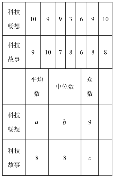 (2)为确定班会科技主题,从该班选择7名学生代表为"科技畅想"和"科技故事"打分,分数列表如下:
