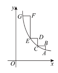 如图,在平面直角坐标系中,"双曲线阶梯"$A B C D E F G$ 的所有线段均与 $x$ 轴平行或垂直,且满足 $B C=D E=F G=1$ ,点 $\mathrm{A}, C, E, G$ 均在双曲线 $y=\frac{k}{x}$ 的一支上.若点 $A$ 的坐标为 $\left(4, \frac{3}{2}\right)$ ,则第三级阶梯的高 $E F=$