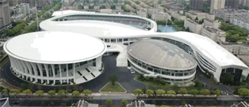 2022年9月杭州举办第19届亚运会,如图是临平区比赛场馆,在这里将有游泳、壁球、水球、乒乓球、射击、轮滑、拳击、武术、曲棍球、场地自行车等比赛项目。下列选项中的人或物体可以看作质点的是