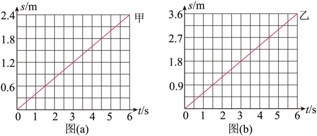 甲、乙两车从相距 20 m 的 $A 、 B$ 两点同时在同一直线上做匀速直线运动,两车的 $s-t$ 图像分别如图 $(a)$ 、 $(b)$ 所示,速度分别为 $v_{\text {甲、 }} v_{\text {乙 }}$ ,经过时间 $t$ 后,两车相距 10 m 。则以下错误的是