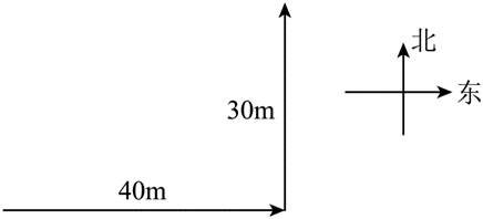 一无人机在同一水平面内运动,初始时悬停于空中,开始运动后在 5 s 内向东沿直线飞行了 40 m ,接着又经过 5 s 向北沿直线飞行了 30 m ,再次悬停。无人机的运动轨迹俯视图如图所示,则无人机在整个飞行过程中