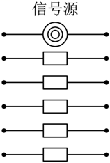 如图中有一个信号源和五个接收器.接收器与信号源在同一个串联线路中时,就能接收到信号,否则就不能接收到信号.若将图中左端的六个接线点随机地平均分成三组,将右端的六个接线点也随机地平均分成三组,再把所得六组中每组的两个接线点用导线连接,则这五个接收器能同时接收到信号的概率是
