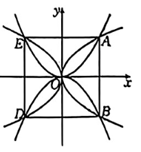 2025年8月27日,中国艺术体操队在艺术体操世铂赛收获 1 金 1 铜。如图,艺术体操的俋操和带操可以舞出类似四角花的图案,它可香作是由抛物线 $C: y^2=2 p x(p>0)$ 绕其顶点分别逆时针旋转 $\frac{\pi}{2}, \pi, \frac{3 \pi}{2}$ 后得到的三条曲线与 $C$ 组合而成的图形,其中,$A, B, D, E$ 分别是这四条曲线两两相交的交点,且四边形 $A B D E$ 的周长为 64 ,则 $p=$