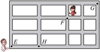 "五一"假期期间,小明和小红两位同学计划去四川省图书馆与老师探讨作业试卷上的圆锥曲线大题.如图,小红在街道 $E$ 处,小明在街道 $F$ 处,四川省图书馆位于 $G$ 处.二人均选择最短路线并约定在天府广场汇合,记事件 A :小红经过 $F$ ,事件 $B$ :小红经过 $H$ ,则 $P(A \mid B)=$