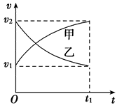 甲、乙两汽车在一平直公路上同向行驶.在 $t=0$ 到 $t=t_1$ 的时间内,它们的 $v-t$ 图象如图所示.在这段时间内