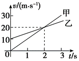 甲、乙两车在平直公路上同向行驶,其 $v-t$ 图象如图所示.已知两车在 $t=3 \mathrm{~s}$ 时并排行驶,则