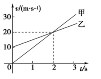 要想富先修路,为了乡村振兴,农村公路正逐渐优化。甲、乙两车在双车道平直公路上同向行驶,其 $v-t$ 图像如图所示。已知两车在 $t=0$ 时,甲车在乙车前 7.5 m ,则
