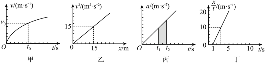 $\text{D.}$ 丁图中,$t=3 \mathrm{~s}$ 时物体的速度为 $25 \mathrm{~m} / \mathrm{s}$