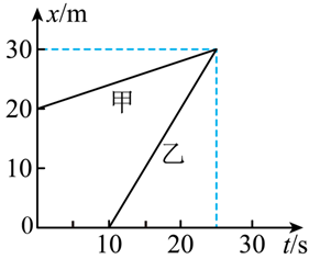 $\text{D.}$ 两物体在 10 s 时相距最远,在 25 s 时相遇