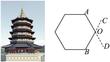 为了测量一座古塔外墙底部的底角 $\angle A O B$ 的度数,李潇同学设计了如下测量方案:作 $A O, B O$ 的延长线 $O D, O C$ ,量出 $\angle C O D$ 的度数,从而得到 $\angle A O B$ 的度数.这个测量方案的依据是