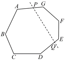 如图,将七边形 $A B C D E F G$ 沿虚线裁去一个角得到六边形 $A B C D Q P$ ,则该六边形的周长一定比原七边形的周长 $\_\_\_\_$ (填:"大"或"小"),其判断依据是